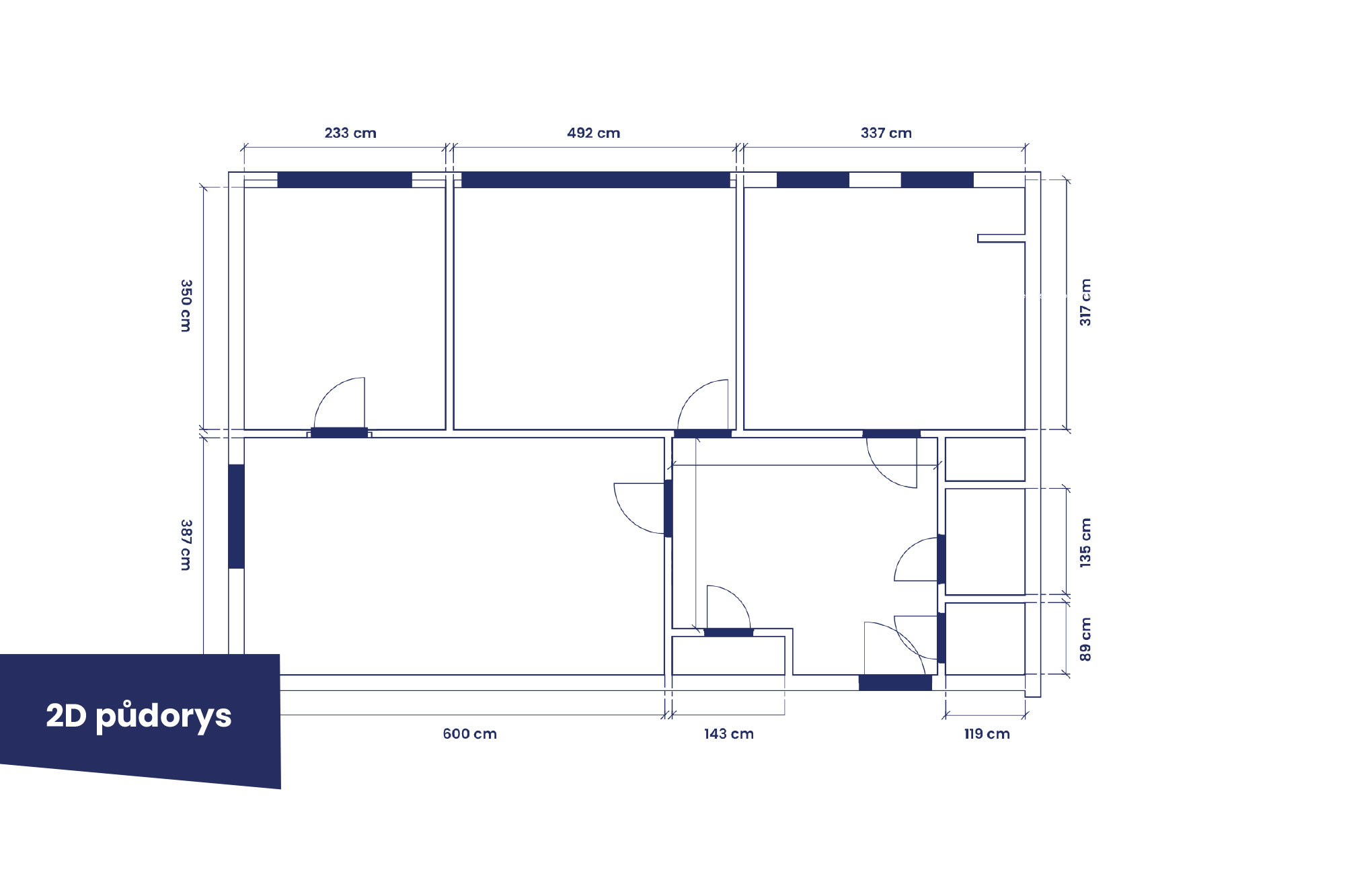 • aktuální dispozice: 3+1, možnost úpravy na 3+kk nebo 4+kk