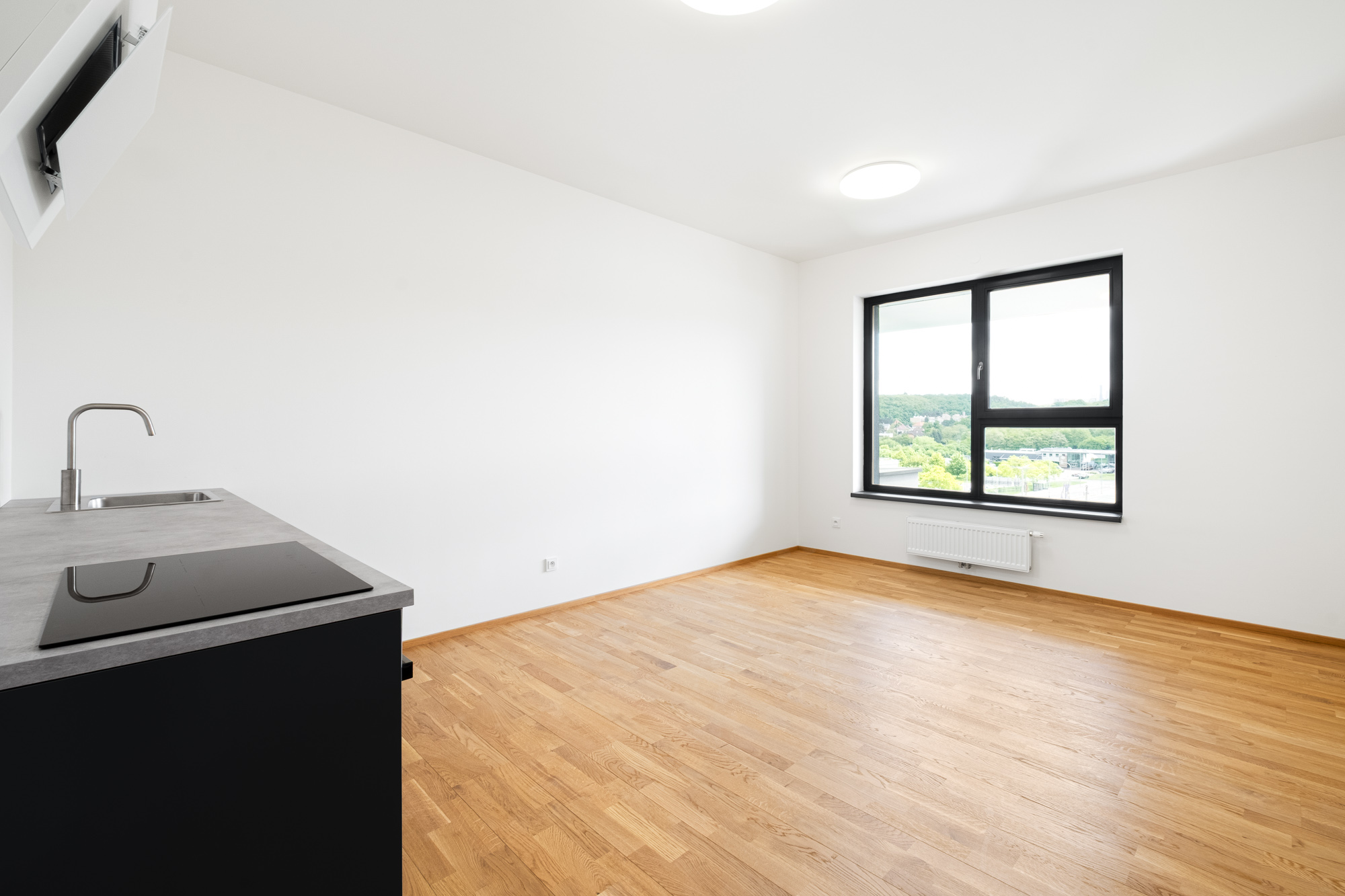 Pronájem zcela nového bytu 1+kk, 32 m² – 5. patro, Rezidence Zahálka, Praha 4 – Modřany