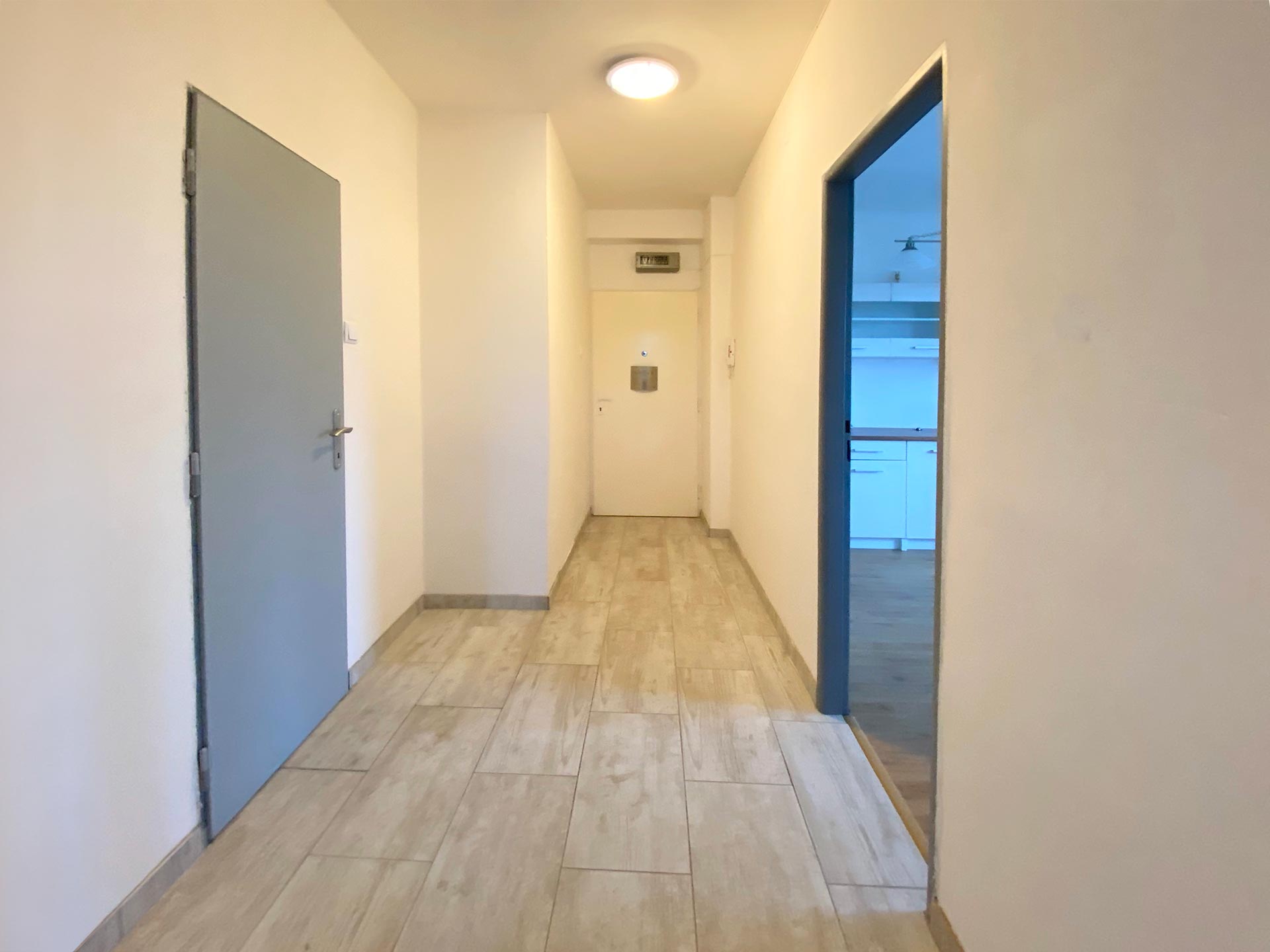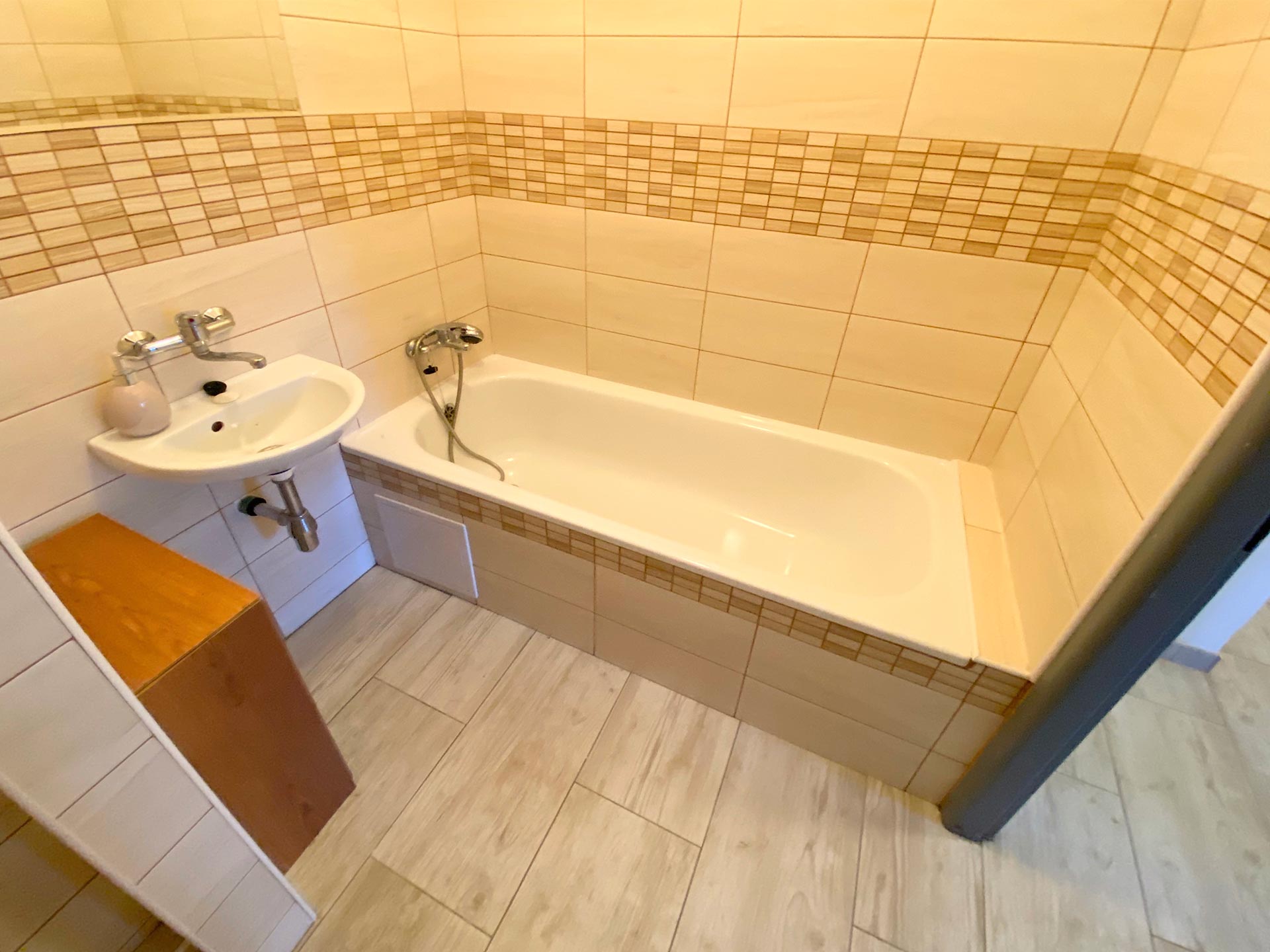 Stav bytu je velmi dobrý. Okna jsou plastová, na podlahách v koupelně a chodbě je položena dlažba, v kuchyni a ložnici plovoucí podlaha. Topení je ústřední dálkové. Pronajímá se nevybavený.