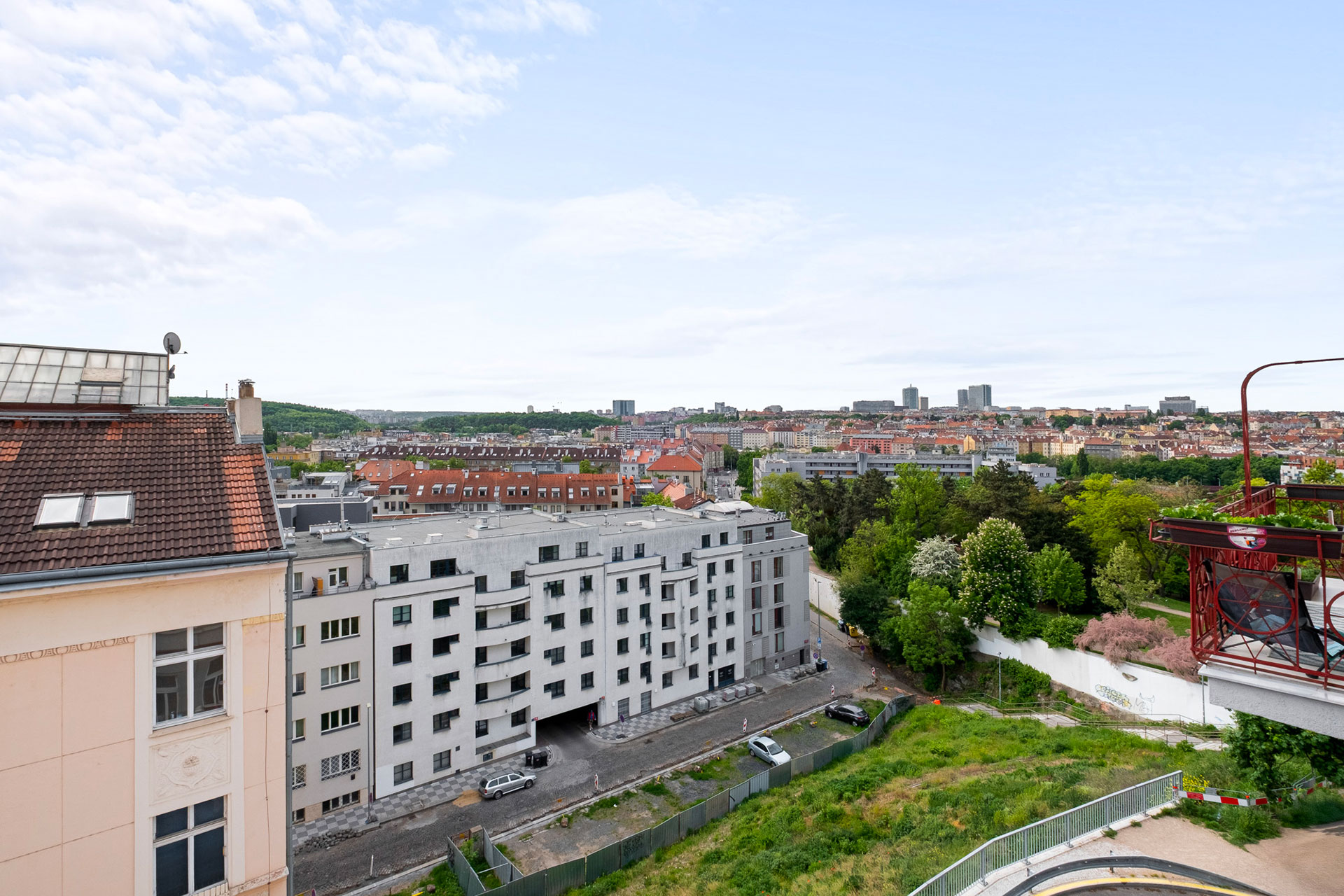 Pronájem atypického bytu 2+kk (50 m²) s výhledem do Grébovky – Rybalkova ulice, Praha 2.