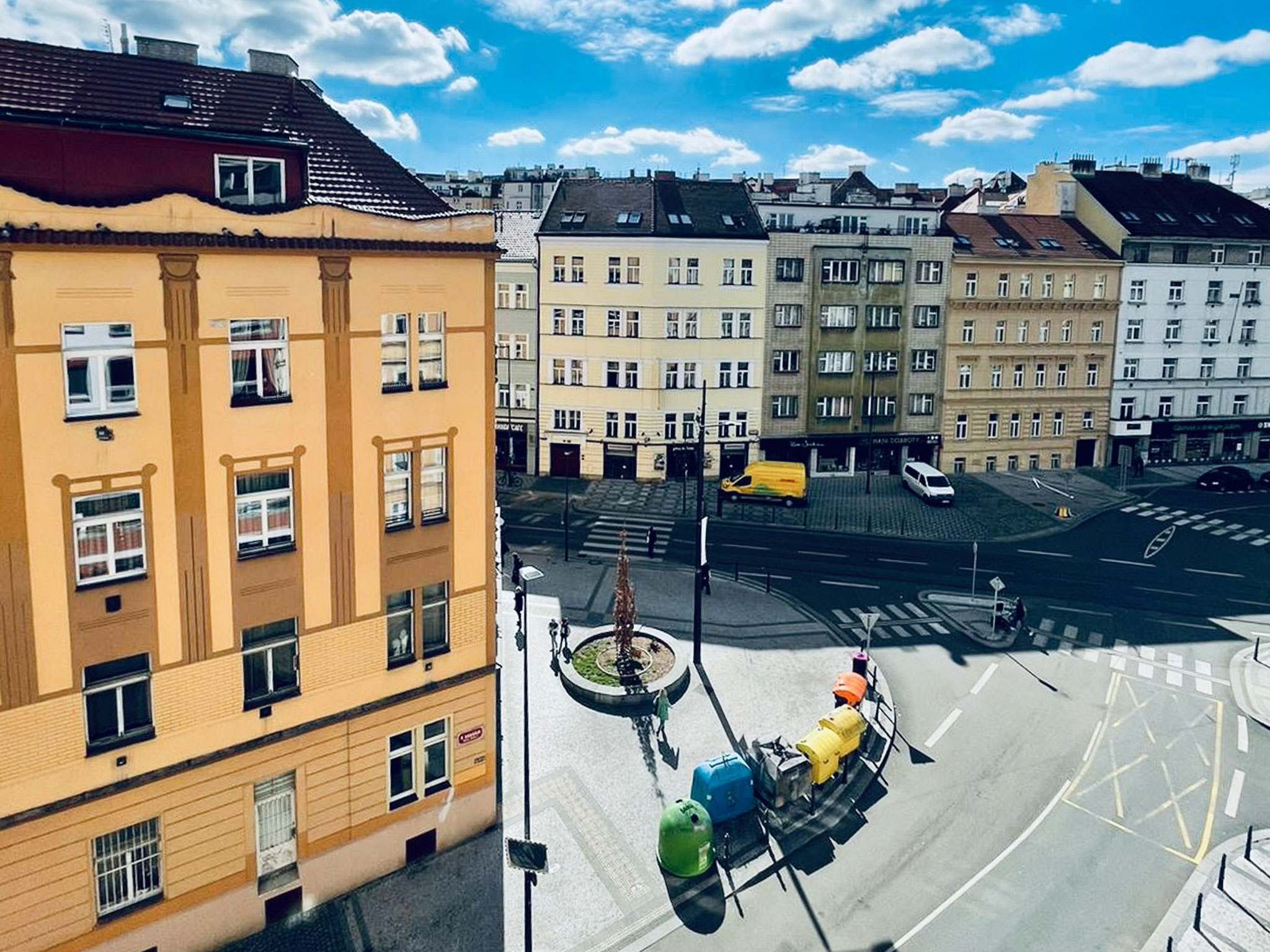 V okolí bytu je veškerá občanská vybavenost: školy, školky, lékaři, lékárna, množství obchodů a restaurací, divadel a sportovních zařízení. Dopravní dostupnost centra Prahy je vynikající: 3 minuty od domu stanice tramvají č. 14 a 11 (do 10 minut dojezd na Václavské náměstí), 5 minut od domu stanice autobusů č. 124, 139, 188 a 196 a 10 minut vlaková zastávka Praha – Vršovice.