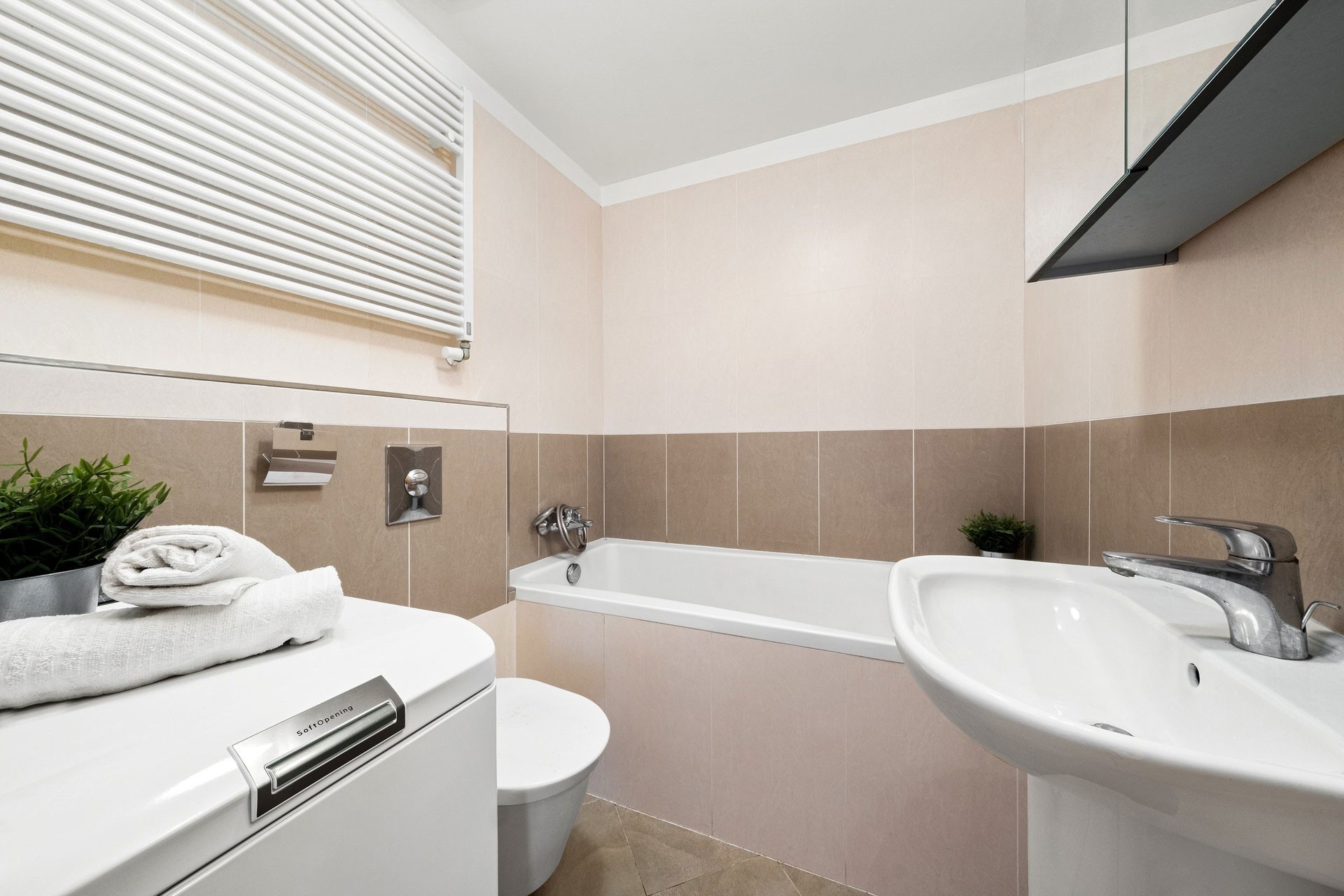 Koupelna s pračkou.