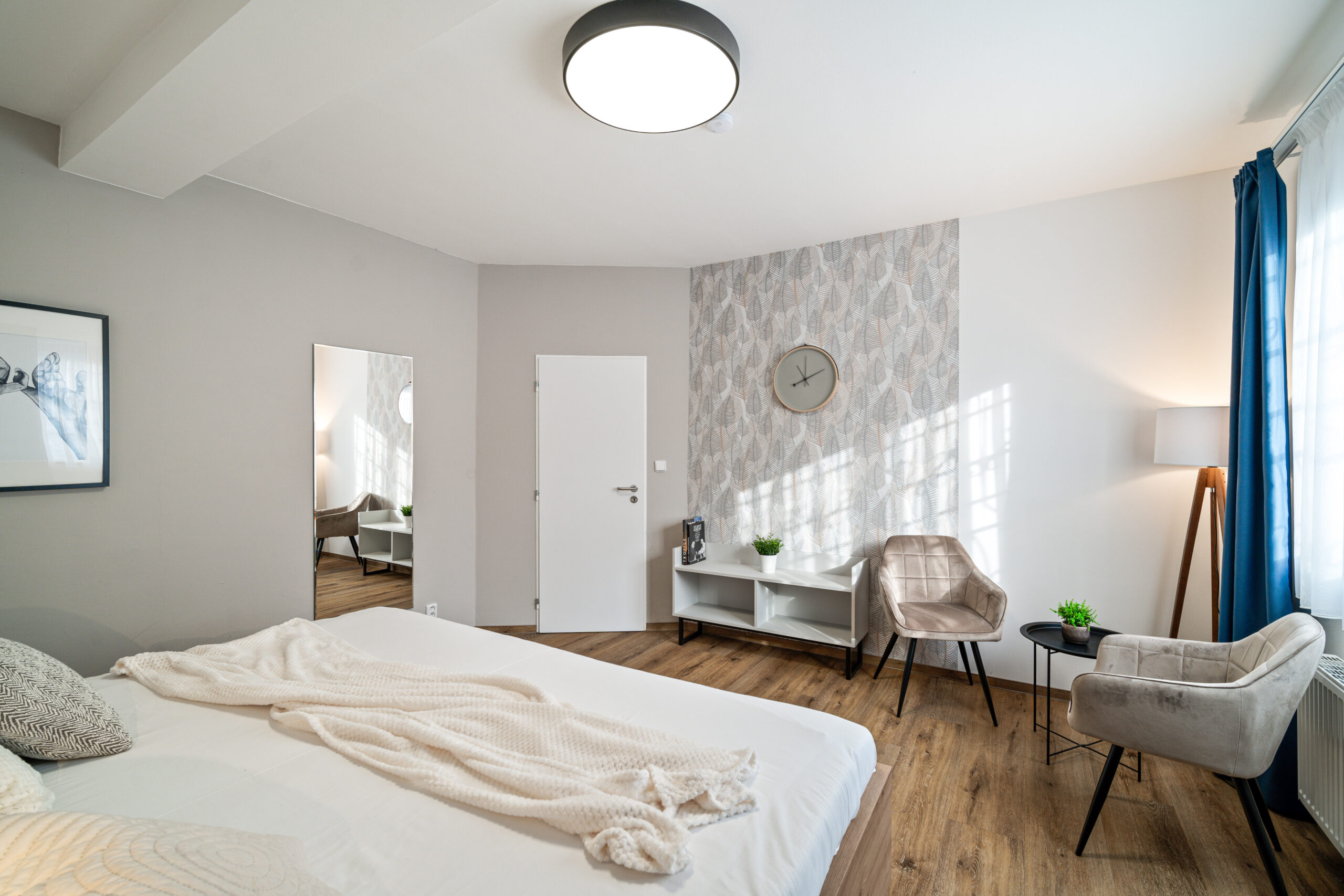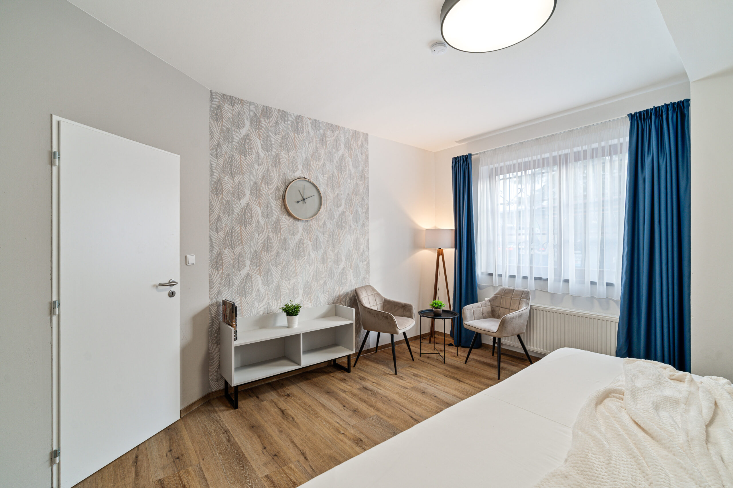 Stav bytu je velmi dobrý a nabízí se zařízený: nájemníkům bude k dispozici sedačka, konferenční stolek, jídelní stůl se židlemi, komody, televizor, manželská postel. Topení je centrální. Bezproblémové parkování před domem.