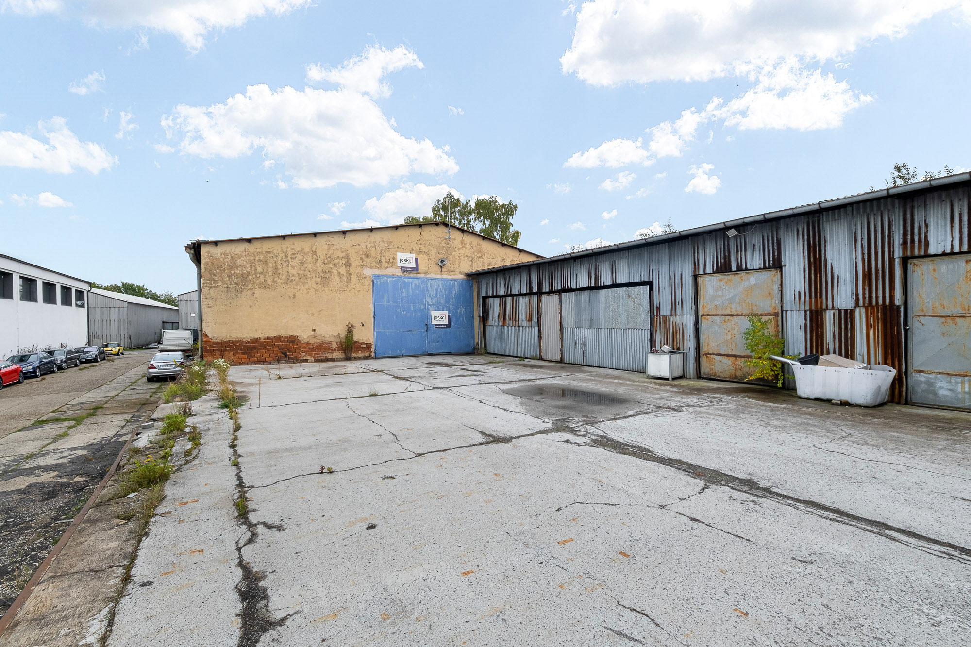 Objekt disponuje třemi dvoukřídlými vjezdovými vraty, které umožňují pohodlný vjezd větších vozidel i manipulaci s materiálem.