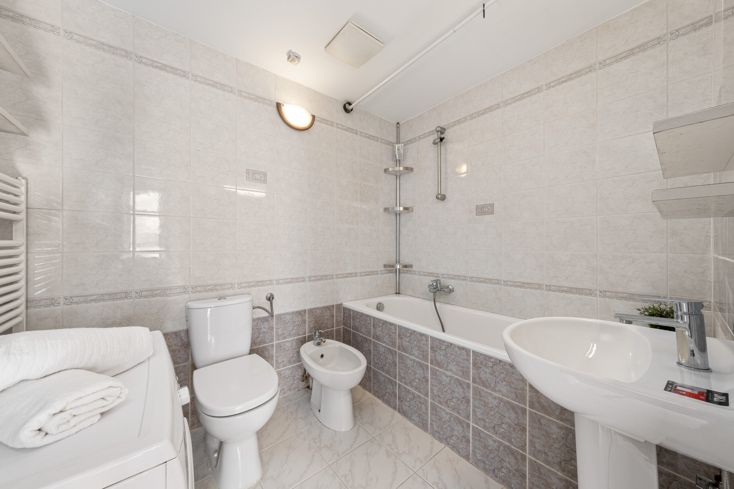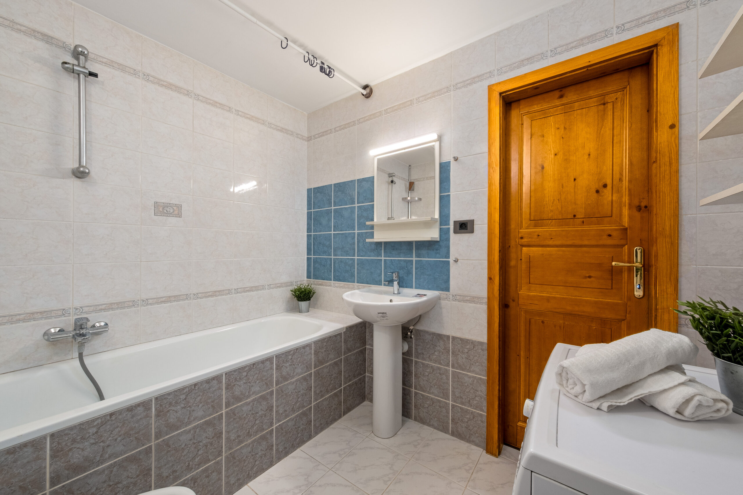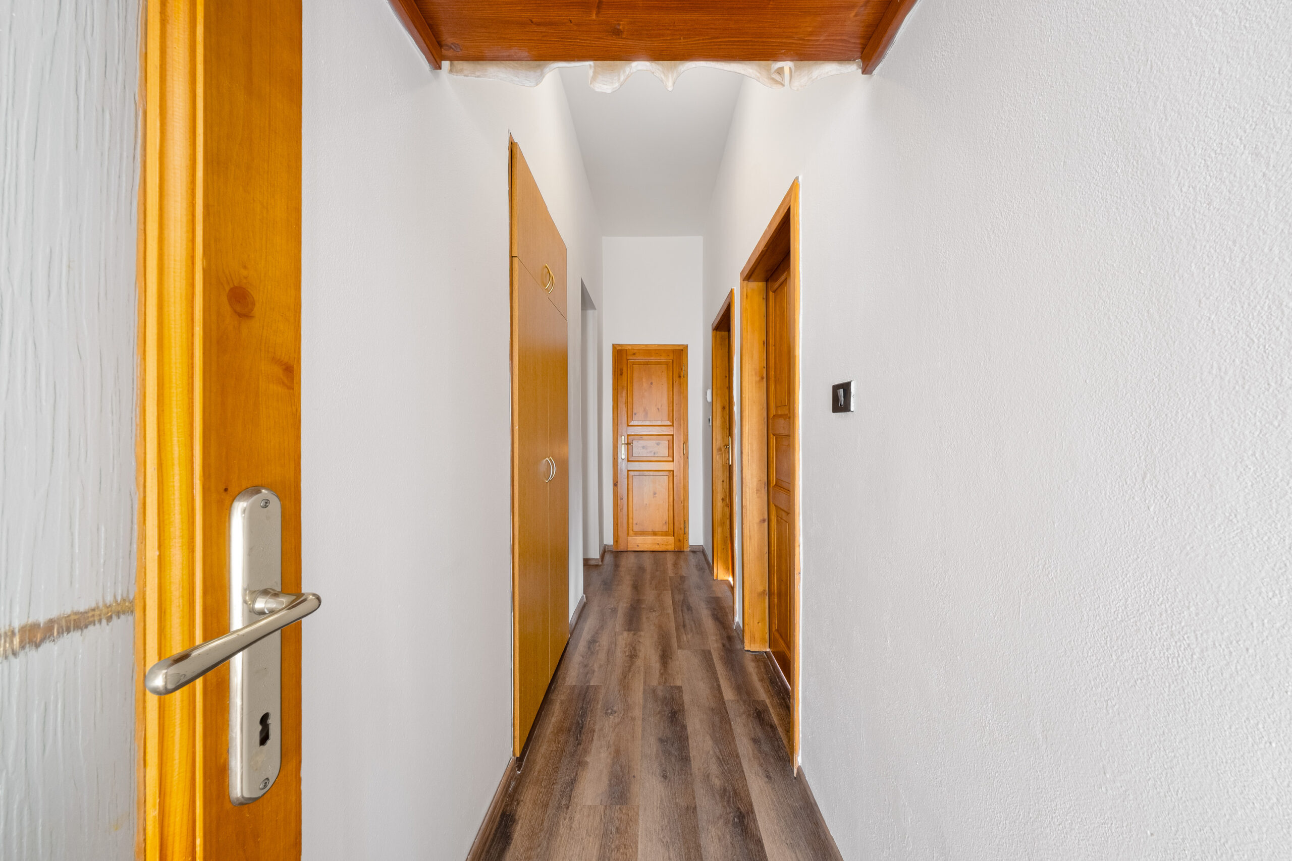 Byt zaujme především svou promyšlenou dispozicí a vzdušností. Ze vstupní chodby se vstupuje do prostorného obývacího pokoje s kuchyňským koutem, který tvoří přirozené srdce celého bytu. Z obývací části dále vede chodba, ze které jsou samostatně přístupné dvě ložnice, koupelna s vanou, pračkou a bidetem a praktická komora na uskladnění věcí.